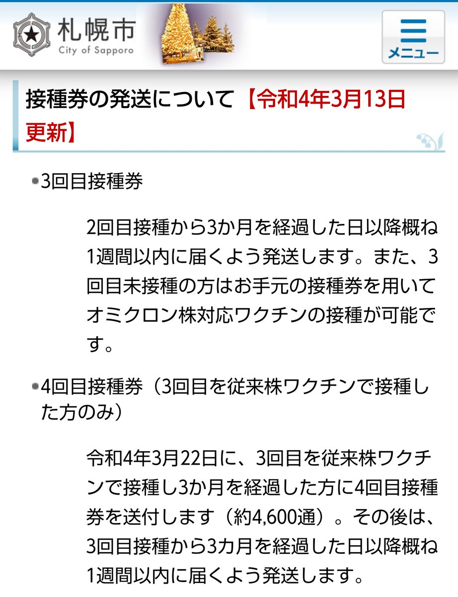 【接種券の発送】 ・3回目接種券 3回目未接種の方はお手元の接種券を用いてオミクロン株対応ワクチンの接種が可能 ・4回目接種券(3回目を従来株ワクチンで接種した方のみ) 3回目を従来株ワクチンで接種し3か月を経過した方に4回目接種券を送付します(約4,600通)
