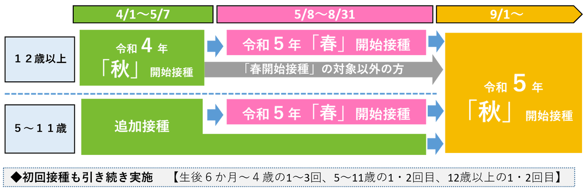 >一昨日(3/7)、「厚生科学審議会 予防接種・ワクチン分科会」が開催され、その中で現在実施しているオミクロン株対応ワクチンを使用した接種を5月7日まで延長し、5月8日からは、新たに、高齢者や基礎疾患を有する方などを対象とした令和5年春開始接種を始めることなどが示され~
