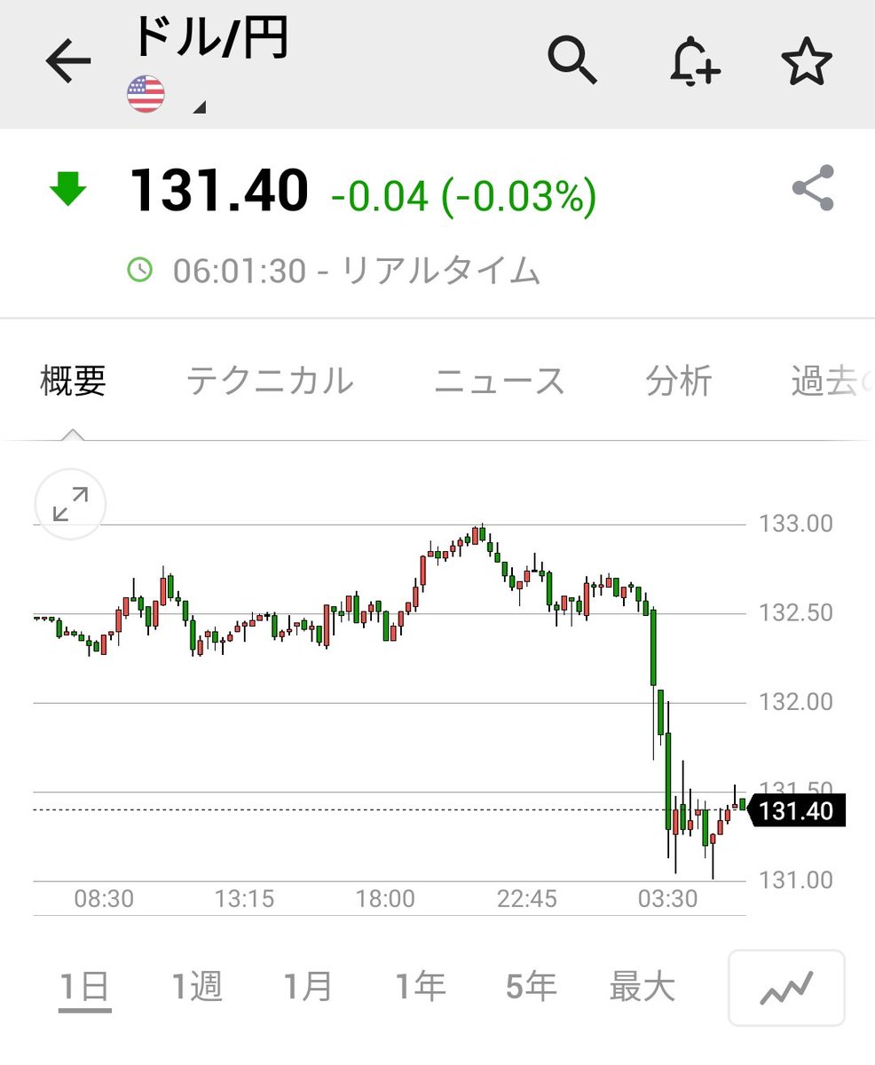✦ドル円 ・FOMCの結果発表&パウエル議長の会見を受け、「ドル売り」の動きが加速し、ドル円は131円台前半まで急落 ・議長は、従来のタカ派姿勢も垣間見せ「年内利下げは見込んでいない。想定より高い水準への利上げ必要なら、そうする」と発言したが、反応は限定的